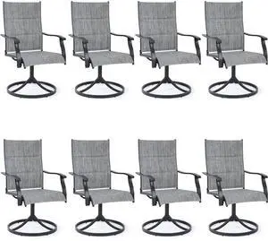 VANBOW Patio Swivel Chairs, Outdoor Dining Chairs High Back, All-Weather Textilene Swivel Rocker Chair for Lawn Porch Garden Grey Set of 8
