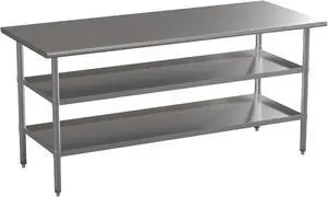 Flash Furniture Stainless Steel 18 Gauge Work Table with 2 Undershelves - 72"W X 30"D X 34.5"H, NSF
