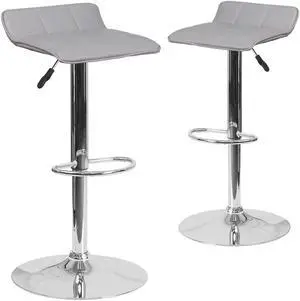 2 Pk. Contemporary Grey Vinyl Adjustable Height Barstool with Chrome Base and Footrest