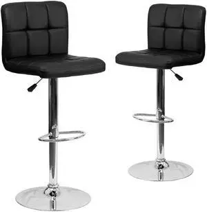 2 Pk. Contemporary Black Quilted Vinyl Adjustable Height Barstool with Chrome Base