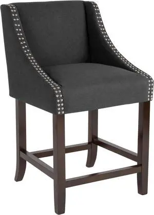 Carmel Series 24" High Transitional Walnut Counter Height Stool with Accent Nail Trim in Charcoal Fabric