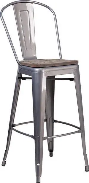24" High Metal Counter-Height, Indoor Bar Stool in Silver - Stackable Set of 4