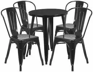 24'' Round Black Metal Indoor-Outdoor Table Set with 4 Cafe Chairs