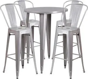 30'' Round Silver Metal Indoor-Outdoor Bar Table Set with 4 Cafe Stools