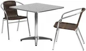 Flash Furniture Coby Indoor-Outdoor 30" Round Bar Table Set with 4 Backless Stools Silver (CH519BH430SQSSV)