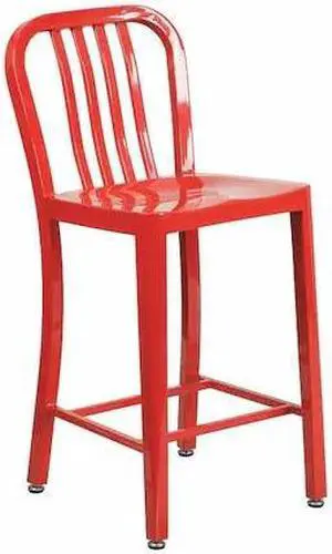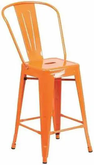 Commercial Grade 24" High Orange Metal Indoor-Outdoor Counter Height Stool with Removable Back