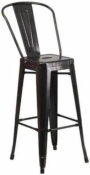 Commercial Grade 30" High Black-Antique Gold Metal Indoor-Outdoor Barstool with Removable Back