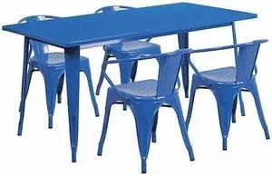 Commercial Grade Blue Metal Indoor-Outdoor Chair with Arms