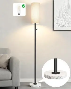 ROTTOGOON Floor Lamp for Living Room with 3 Color Temperatures LED Bulb, Standing Lamp Tall Industrial Floor Lamp Reading for Bedroom, Office (9W LED Bulb, Beige Lampshade Included) -Black