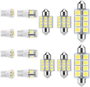 13Pcs T10 31mm LED Dome Map Plate Trunk Lights 6000K Festoon Bulbs - White - One size
