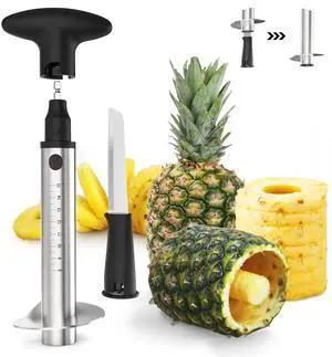Pineapple Cutter with Knife, [Upgraded, Electric & Manual] Durable Pineapple Corer with Electric Drill Accessory, Stainless Steel Fruit Peeler Knife Pineapple Slicer Core Remover Kitchen Tool