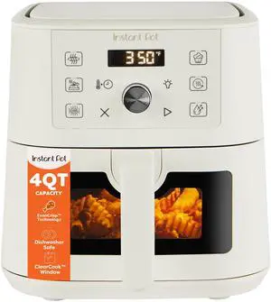 4 QT Air Fryer & Grill | 8-1 Preset Cook Modes | Transparent Fry Bowl for Best Cooking Results | Cook Shrimp, Steak, Fries, Wings & More | 4 QT Glass Air Fryer & 1.2 QT Grill | White