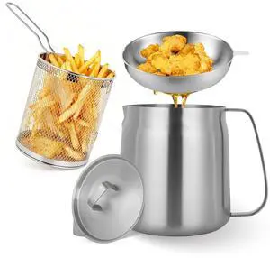 119oz Stainless Steel Deep Fryer Pot with Basket and Oil Strainer, Multifunctional Deep Frying, Small Stove Top deep fry for Kitchen and Camping, Steel Pour Pot for French Fries, Chicken (3.5L)