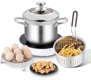 Beauford 3.65-Quart Stainless Steel Deep Fryer Pot with Basket & Glass Lid  Induction, Oven & Dishwasher Safe, 5-Ply Encapsulated Base, Soft-Touch Handle