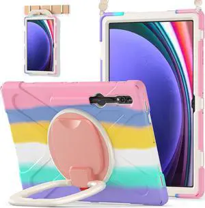 BATYUE Case for Galaxy Tab S9 Ultra - Shockproof Protective Case for 14.6-inch Galaxy Tab S9 Ultra/Galaxy Tab S8 Ultra (SM-X910/ X900) with Pencil Holder/Rotating Stand/Shoulder Strap - Colorfull Pink