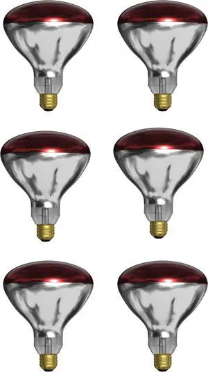 (case of 6) GE Lighting 250 watt Red Heat Lamp, BR40, Medium Base, 120 volt, 5000 hours