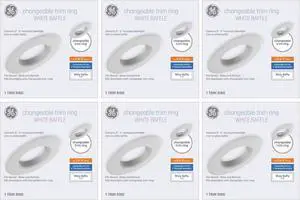 (6 trim rings) GE Lighting 47834 changeable Trim ring Baffle, RS6 (6 inch diameter) metal trim ring, fits 5 or 6 inch fixtures, converts 5 or 6 inch recessed downlight trim to white baffle
