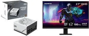 ASUS Prime 850W Gold (850 Watt, ATX 3.0 Compatible, Fully Modular Power Supply, 80+ Gold Certified, Dual Ball Bearings, Two Color Options in One, 8-Year Warranty) AP-850G GIGABYTE 27" QHD 2K 1440P 180hz IPS with AMD FreeSync Premium 1ms HDR