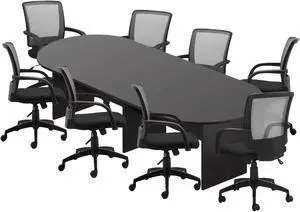 GOF 10 FT Racetrack Conference Table w/ 8 Chairs Set for Home Office, School, Library, Board Room, Meeting Room, Break Room - Sturdy Table & Comfortable Chairs for Meetings with Laptops (Espresso)