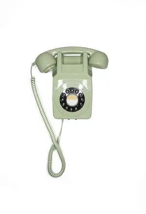 GPO 746 Wall-Mounted Push-Button Retro landline Phone - Curly Cord, Authentic Bell Ring (Green)