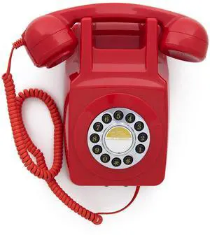 GPO 746 Push-Button 1970s-style Retro Landline Phone - Curly Cord Authentic Bell Ring - Red