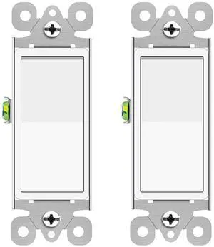 Greencycle 2PK Single Pole Rocker Light Switch,Paddle Light Switch 15 Amp,Sp Switches White,120V-277V AC,On/Off Wall Switches, Residential/Commercial Grade,Home & Office,UL/CUL