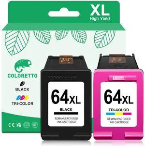 COLORETTO 64XL Black and Color Ink Cartridge for HP Printers Envy Photo 7855 7858 7155 7120 7800 6252 6255 7158 7100 Tango Remanufactured 64 XL Ink Cartridges Replacement for HP Ink 64 HP64 Combo Pack