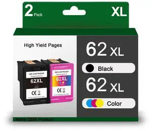 H&BO TOPMAE 62xl High Yield Black and Tricolor Ink Cartridges Combo Pack Replacement for HP 62 62XL Printer Ink Use with Officejet 5740 200 250 258 Envy 7640 5660 5540 5640 7645 (1 Black 1 Color)