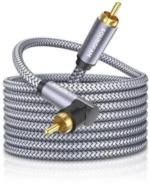SOUNDFAM 90 Degree Subwoofer Cable 30ft/10M,Right Angle RCA Cable Male to Male for SubwooferAmplifier-Grey