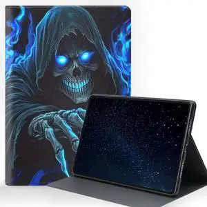 ZXYBNMLE Case for iPad 10.2 Case (9th/8th/7th Gen), Protective Tablet Cover with Adjustable Stand and Magnetic Auto Wake/Sleep,Skull with Blue Flame Art