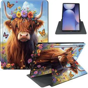 Case for Samsung Galaxy Tab S10 Plus/ S9 FE Plus/ S9 Plus 5G Tablet 12.4'' Case, PU Leather Stand Cover with Auto Sleep/Wake, Shockproof TPU Back, Cute Highland Cow