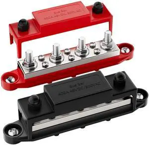 RVBOATPAT 400A Power Distribution Block 12V Bus Bar 4 x 5/16" (M8) Terminal Studs and 6 x #8 Terminal Screws 12 Volt Marine Bus Bar Positive & Negative
