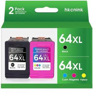 hkcnink 64 64XL Ink Cartridge Combo Pack Replacement for hp Ink 64 for hp 64xl Black Ink Cartridge for hp 64 Ink use with hp Envy Photo 7855 Ink cartridges 7200 7455 7858 7900 Printer (1BK+1C)
