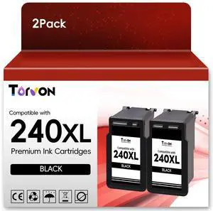 Torvon Remanufactured Ink Cartridge Replacement for Canon 240 XL Black Ink Cartridge PG-240 XL PG240XL for Pixma MG3620 TS5120 MG3600 MG3520 TS5100 MG2120 MX452 MX532 MX472 MX512 (2 Black)