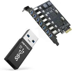 USB 3.0 PCI-e Expansion Card 7Port + RIITOP USB 3.1 A to C Adaptor [Double-Side 10Gbps]