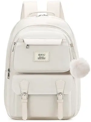 RJEU Girls School Backpack,Aesthetic Bookbag with 15.6in Laptop Compartment for High School College Students,Cute Kids Schoolbag,Beige