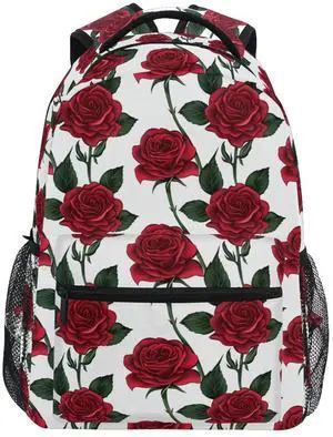 Qumton Red Rose Flower Floral Laptop Backpack for Women Men, Personalized College Bookbag Travel Bag Casual Daypack back packs