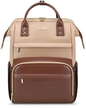 LOVEVOOK Backpack Purse for Women, Fits 17 Inch Laptop, Fashion Travel Work Anti-theft Bag, Business Computer Waterproof University Backpacks, Beige-Black-Brown