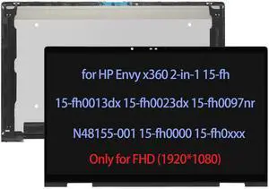 N48155-001 LCD Touch Screen Replacement for HP Envy x360 2-in-1 15-fh0013dx 15-fh0023dx 15-fh0097nr 15-fh 15-fh0000 15-fh0xxx Digitizer Bezel Assembly FullHD (1920 * 1080)