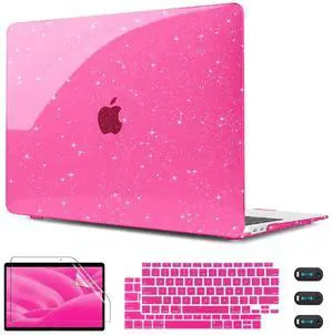 CISSOOK Rose Pink Glitter Case for MacBook Air 13 Inch 2021 2020 2018 Release Model A2337 M1 A2179 A1932, Sparkly Hot Pink Hard Shell Case with Keyboard Cover for MacBook Air13 2020-2021 with Touch ID