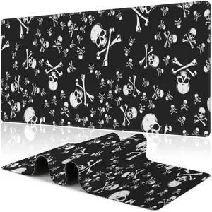 Skull Head Desk Mat,Large Pirate Skull Crossbones Gaming Keyboard Mouse Pad,Non-Slip Rubber Base Desk Pad Thick Stitched Edges Waterproof Mousepad Mouse Mat 31.5"x11.8"