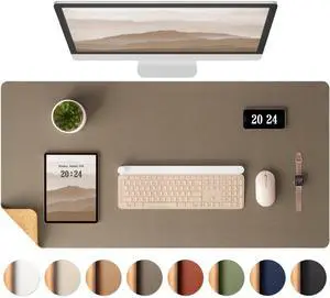 Aothia Dual-Sided Desk Pad - Leather Desk Mat, Natural Cork Desk Pad Protector, Large Mouse Pad for Desk, Waterproof Desk Blotter Pad, Desk Writing Pad for Office Work/Home, Coffee (37.8"x17")