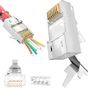 JODROAD Shielded RJ45 Cat6A Cat7 Pass Through connectors - 3 Prong 8P8C 50U Gold Plated 2-Piece Pass-Thru Modular Data Plug for FTP/STP Cable & solid wire (30 Pack)