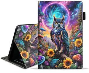 POIUYTREW Case for Kindle Fire 7 Tablet (7" Display, 9th/7th Generation, 2019/2017 Release) - PU Leather Folio Cover with Smart Auto Wake/Sleep, Owl Under The Moon
