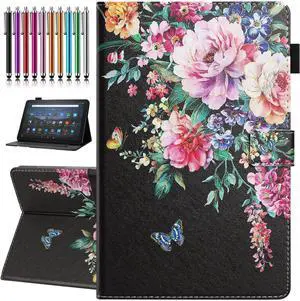 COOWPS Case for All-New Fire HD 10 Tablet (13th/11th Generation, 2023/2021 Release) 10.1" - Slim Folding Stand Cover with Auto Wake/Sleep, Hand Strap & Stylus Pen Holder, Spring Bloom