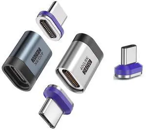 Magnetic 8K Ultra HD Video 40GBPS Full speed data transfer USB4.0 magnetic Type-C Adapter, 24Pin Connectors 240W Super fast charging (Connectors 3Pcs - Adapters Straight-SilverGrey, 2Pcs)