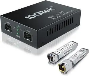 ipolex 10G SFP+ to SFP+ Fiber Media Converter, 10G OEO Converter, with SFP+ LR Module and 10GBase-T Copper Module, Backs Single Mode LC Fiber and CAT.6a/7, Fiber to Ethernet Transmission up to 10km