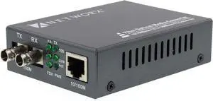 Single Mode ST Gigabit Fiber Media Converter - Built-in Fiber Module 20 km (12.42 Miles) ST to UTP Cat5e Cat6 10/100/1000 RJ-45 Auto Sensing Gigabit or Fast Ethernet - Jumbo Frame - LLF Support