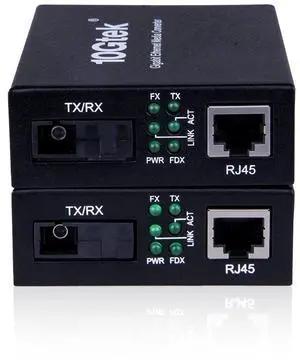 A Pair of Gigabit SC to RJ45 Converter, Single-Mode Fiber to Ethernet Media Converter (Built-in Module, 1310nm, 20km), Plug & Play, 10/100/1000 Base-T Compatible, Auto-Negotiation, Jumbo Frame