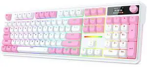 CORN White Gaming Mechanical Gaming Keyboard RGB Backlit LED with Wrist Rest, Blue Switches - Clicky, Metal Panel 104 Keys for Mac, PC, White“ i think this keyboard is way better than the 3x priced ones ”